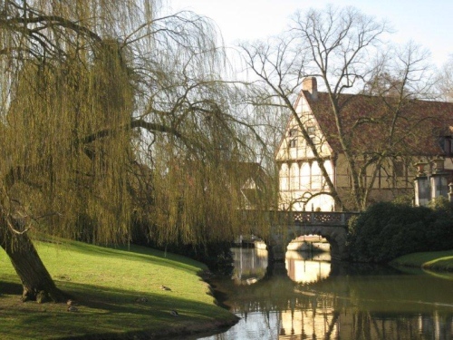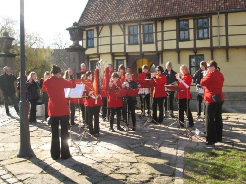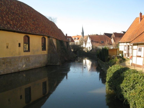 Vor der Schule brauchen wir nur die Straße zu überqueren dann sehen wir schon die schöne Wasserschlossanlage. In Höhe der alten Wassermühle spannt sich der Startbogen und die Erfassungsmatten werden bereits scharf gemacht. Aus den Lautsprecherboxen bringt uns Shakira in Stimmung und etwas weiter gibt es Livemusik von einer Musikkapelle.