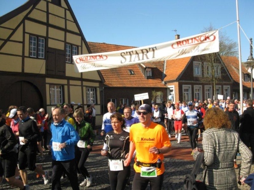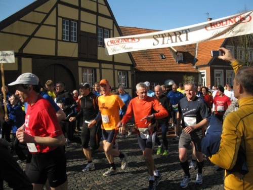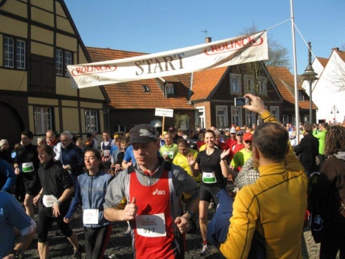 Um 10:30 haben sich 250 Marathonläufer und 220 Staffelläufer eingefunden und wir werden dann pünktlich auf die Strecke geschickt. Das Wetter ist heute bei blauem Himmel und frühlingshaften 12 Grad ideal zum Marathonlaufen.