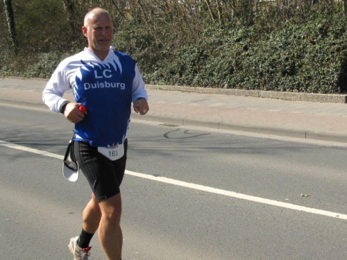 Das Feld ist noch dicht beisammen und ich kann mal wieder den vielen Gesprächen lauschen. Da sind die alten Hasen, welche gerne ihre Ratschläge an die Neulinge weitergeben möchten, sowie die Freunde ,die sich jetzt hier auf der Strecke treffen und lautstark begrüßen. Bei Kilometer 4 überholt mich schon Johann Spieker. Er ist wieder gut drauf und hat seine Verletzung auskuriert. Es ist heute sein 13 Marathonlauf – in diesem Jahr!