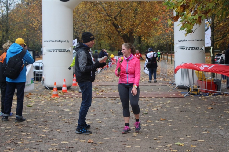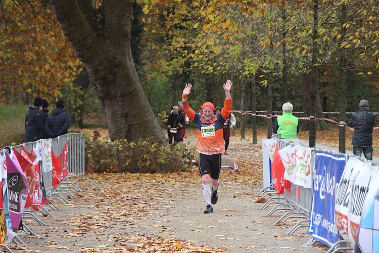 Der Begleitradler des ersten Ultraläufers kündigt sich an. Muß ich mich von dem noch überholen lassen? Nur nicht verrückt machen lassen. Ich versuche, mein Tempo etwas zu steigern, was auch ganz gut gelingt. Auf dem Vorplatz der Konzerthalle schließe ich zu Günter auf und bedanke mich für die richtigen Worte zur richtigen Zeit. Die nötigen Körner für einen ordentlichen Zieleinlauf habe ich noch. Aber den ersten Ultra kann ich mir nicht vom Leibe halten, noch im Bagno werde ich kassiert. Im Gegenzug schaffe ich es, bis zur Allee noch auf einige Läufer aufzuschließen. Die Waden und die Oberschenkel sind steinhart. Dann sehe ich vor mir tatsächlich die Paderpiraten. Eine finale Motivation. Die Allee zum Ziel fliege ich förmlich hinab, einer Endzeit von 4:07:35 Stunden entgegen. Auch wenn es nicht mehr für eine sub-4 reicht, freue ich mich über den negativen Split. Das Laufen nach Gefühl ist manchmal halt doch besser, als das Kleben am Zeiteisen.