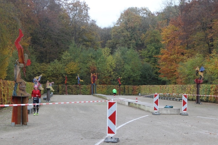 Seit meiner letzten Teilnahme gab es eine Streckenänderung. Heute werde ich die notwendigen Kilometer auf drei Runden ohne Einführungsrunde bewältigen. Mal schauen, wie gleichmäßig das wird. Der übliche Countdown, ein Schuss und schon bin ich unterwegs. Unterwegs sind aber erst einmal die Marathonis und die Ultraläufer. Die Teilnehmer über die 14 und 28 Kilometer folgen später. Wer sich überschätzt hat, kann rundenweise mit Wertung aussteigen.