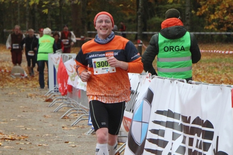 Meine Kraft reicht immer noch, Gehpausen bleiben mir erspart. Etwas zäh ziehen sich die folgenden Kilometer dahin. Ein letztes Mal biege ich auf die Zusatzschleife ein. Läufer kommen mir kaum noch entgegen. Da ruft mir Günter zu: „Markus, bei dir geht noch was. Du bist doch gleich im Ziel.“ Stimmt, sind ja nur noch schlappe 4 Kilometer. Letzte Wende und schon geht es fast nur noch bergab.