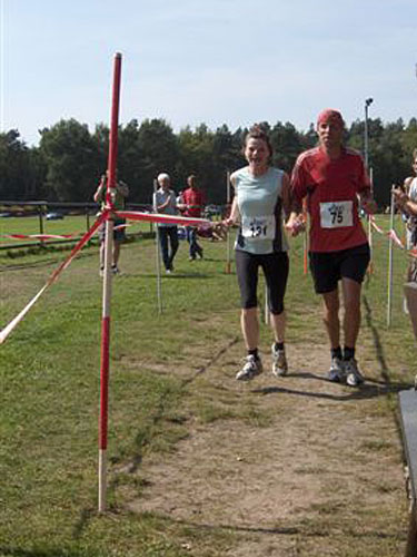 Ich laufe nach 3h:52,26min in das Ziel auf dem Sportplatzgelände des TSV Poggenhagen ein und werde 15. der AK M35. Jan folgt fünf Minuten später, aber vor ihm kommt noch Helga. In kämpferischer Manier wird sie erste der AK W50. Weiche Knie und schwere Beine machten Jan zu schaffen. Aber mit Platz zwei in der AK M60 ist er sehr zu frieden. Noch mehr freut es ihn, gleich bei seinem ersten Marathon unter vier Stunden geblieben zu sein.
