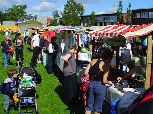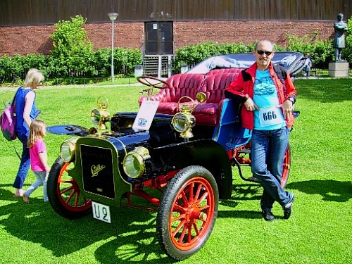 Die Musik kam nicht vom Lautsprecher, sondern aus einem Leierkasten. Alles was angeboten wurde, hätte es vor 100 Jahren auch geben können. Hausgemachte Marmeladen, Süßigkeiten, gehäkelte Sachen, Keramik, Türschilder, Spielsachen . . . Auch jüngere Sachen im Angebot kommen auf alt daher. Mit alten Autos konnte man sich fotografieren lassen, die Chauffeure waren entsprechend gewandet. Der „Goodibag“ war aus Leinen mit altem Aufdruck und enthielt ein Stofftaschentuch mit dezentem „Jubileumsmarathon“-Aufdruck. Solche Tücher wurden damals, an allen vier Ecken geknotet, als Sonnenschutz getragen. Die Zahlen auf der Startnummer waren in der Schrift wie damals. Die Startnummer selber war aus gestärktem Gewebe, ganz ohne Werbung darauf, wie 1912 eben. Die Zeitnahme war kaum sichtbar aufgeklebt.