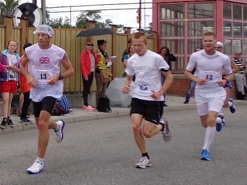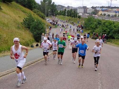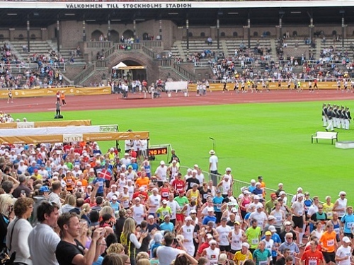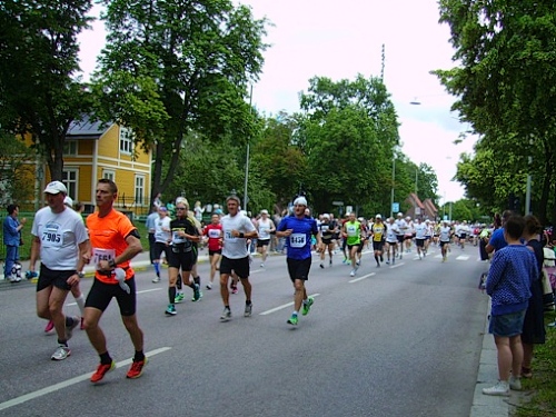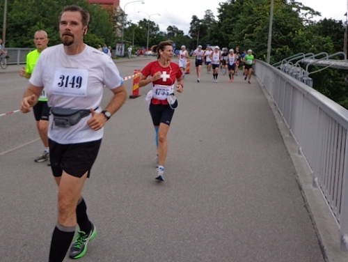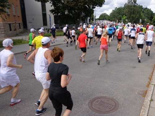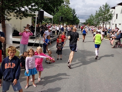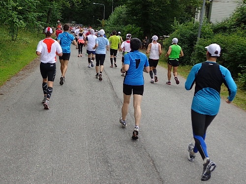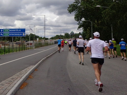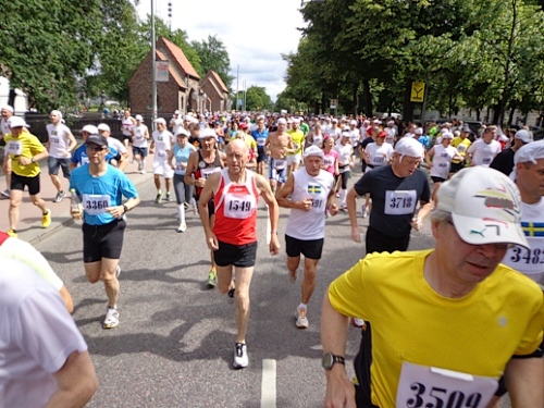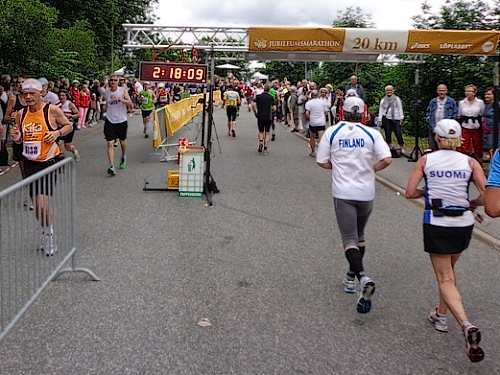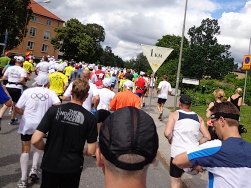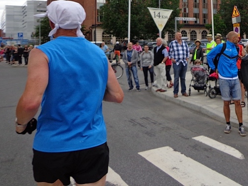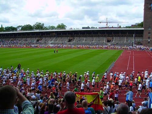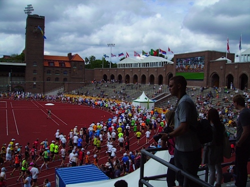 13h58 Eine Gewehrsalve schickt uns auf den Kurs. 3min später bin auch ich unterwegs. Eine dreiviertel Runde im Stadion und raus auf die Straße, den Valhallavägen. Klasse Stimmung, viele Zuschauer, ein tolles Erlebnis. Bin ich froh!