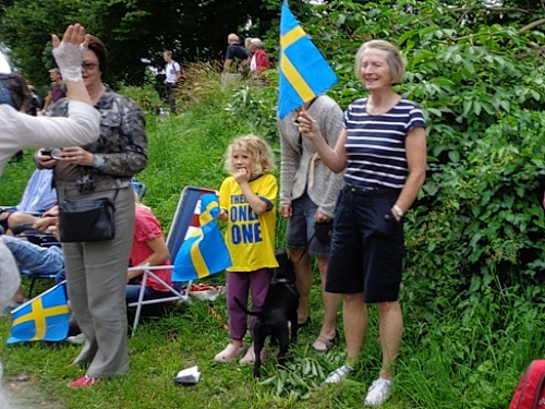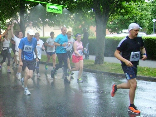 gibt es die erste Zwischenzeit in einer Baumallee, großes Zuschauerinteresse herrscht hier. Ich habe knapp 31min gebraucht, hetzen wollte ich eh nicht. Dazu ist auch das Streckenprofil zu giftig. Ich weiche den Duschen aus, es hat 19 Grad, das kann ich ohne Extrakühlung aushalten. Mit „Heja, heja!“ werden wir angefeuert .