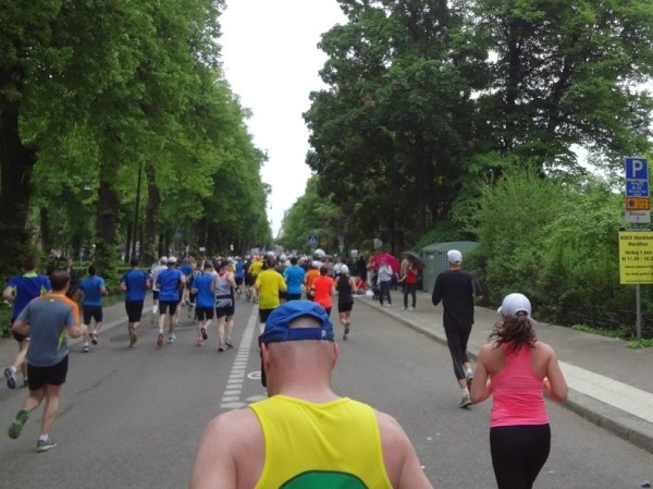 Km 2 - Der breite, durch eine Allee zweigeteilte Valhallavägen ist die längste Strasse in Stockholms Innenstadt. Die Läufermasse verteilt sich beidseits der Platanen gut. Wir laufen einen Kilometer lang schnurgerade sanft abwärts. Die Bauchschmerzen sind verschwunden. Der Puls klettert aber höher als mir lieb ist. Kein Lüftchen weht, der Himmel bezieht sich, es ist ungewohnt schwülwarm und der Schweiss tritt schon aus allen Poren.