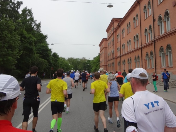 Km 17 - Grosse Flaggen schwenkend feiern die Finnen ihre Helden. Die Aussicht auf das Olympiastadion zieht uns die Sturegatan hinan. Nach gut 16 Kilometern ist die erste Runde bewältigt. Das Stadion muss warten! Nach rechts biegen wir wieder auf den Valhallavägen ein. Die Schlussrunde beginnt. Noch sind es allerdings 26 Kilometer bis zur Ziellinie! Ich frage mich, ob meine Energie heute für 42.195 Kilometer reichen wird. Unser zweiter Stockholm Marathon, von dem ich erwartet hatte, er würde ein „Spaziergang“ werden, stellt sich als grosse Herausforderung heraus.