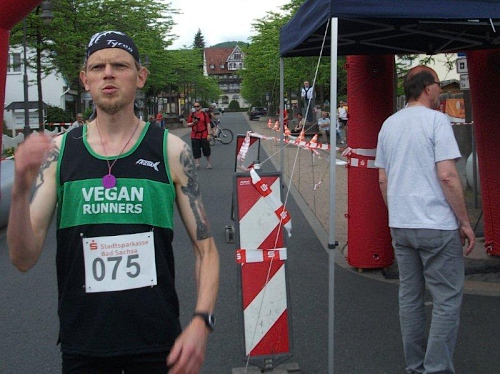 Endlich zurück in Bad Sachsa, durch einen Park und ins Ziel. Ein anspruchsvoller Landschaftslauf und eine schöne Trainingseinheit für Trailrunner bei gut umsorgter und gemütlicher Atmosphäre ist geschafft. Einziger Wermutstropfen, unsere Petra hat sich verlaufen und kam ein wenig gefrustet mit ca. 15 Minuten Verspätung ins Ziel. Hat sie einen der grünen Markierungspfeile übersehen? Vielleicht ist auf der verzweigten Strecke auch der eine oder andere Posten mehr von Vorteil?