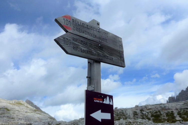 Lange überlegen wir, ob wir bei dem Nebel überhaupt starten sollen. Aber wenn man schon mal hier ist? Von der Auronzo-Hütte nehmen wir den 10 km-Rundweg rechts herum, nutzen den quasi Spazierweg und sehen – nichts. Doch langsam beginnt das eine oder andere kleine Blau aus den dichten Wolken zu blitzen. Die Löcher werden immer größer, und als die entscheidende Stelle kommt und wir um die Ecke biegen, trifft es uns wie ein Schlag. Aber positiv! Überwältigend grüßen uns die Drei Zinnen und mir ist sofort klar, dass ich zu gegebener Zeit zurückkehren werde, um den legendären Lauf von Sexten hinauf zu diesem Naturwunder anzugehen.