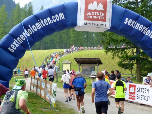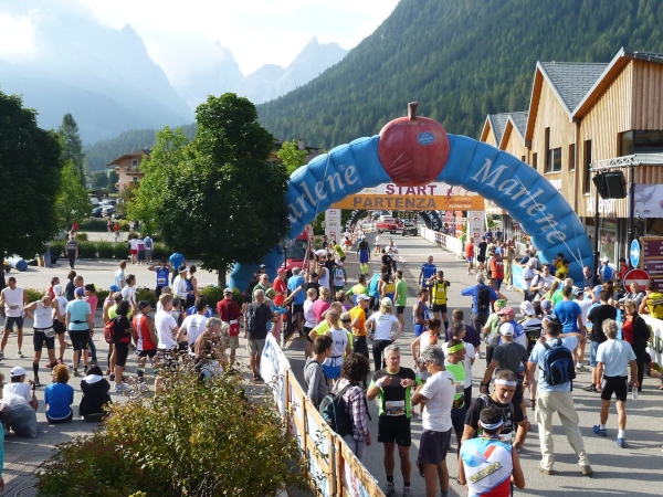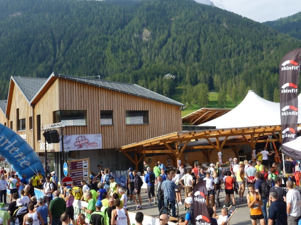 Laufmesse und Start sind beim Gemeindezentrum Haus Sexten, das einen großen Veranstaltungssaal und die Stadtinformation beherbergt. Direkt dahinter transportiert die Seilbahn Wanderer und Skifahrer auf den Helm (Monte Elmo).