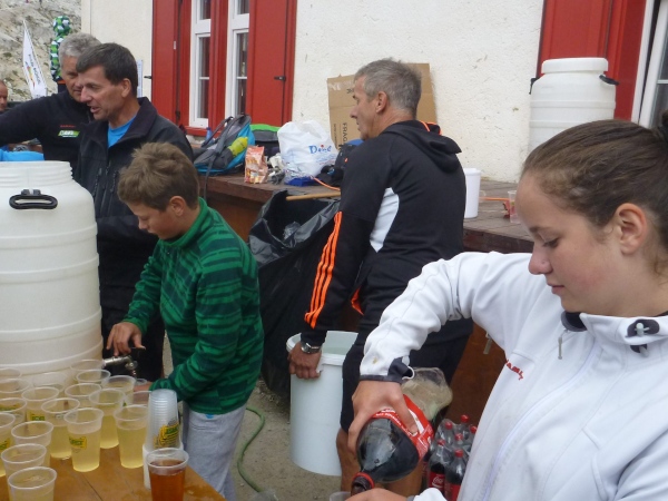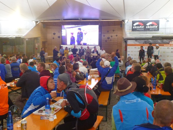 Von der Fischleinbodenhütte gibt es einen Bustransfer nach Sexten. Dort besteht eine Duschmöglichkeit im Sportzentrum (auch im Freibad könnte man theoretisch noch einige Bahnen ziehen). Danach geht es zur Pasta-Party im Gemeindezentrum mit großen Nudelportionen, Obst, Kuchen, Wasser, Cola, Bier und Wein - und natürlich der Siegerehrung.