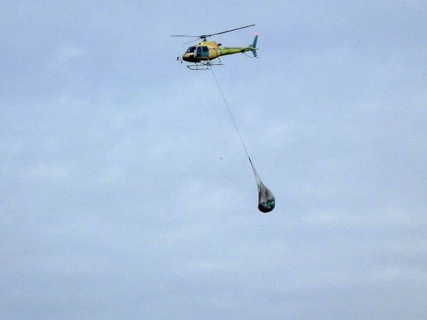Interessant auch die Hubschrauberflüge, die unsere Kleidersäcke zum Ziel transportieren. Mit in meinem Rucksack auch eine PET-Flasche Weißbier. Sozusagen ein Flugbier.