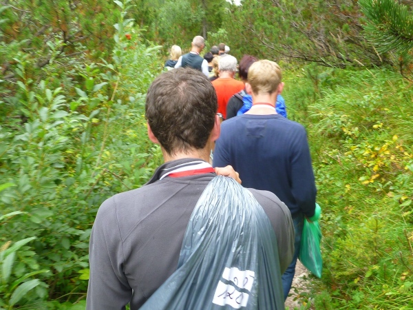 Und woran erkennt man einen Berglauf-Einsteiger? Er ist mit Müllsack unterwegs. Erst beim zweiten Mal weiß man, dass man seinen Rucksack in den „offiziellen“ Kleider-Müllsack steckt. Dann geht’s bergab leichter.