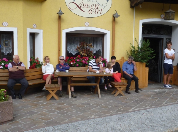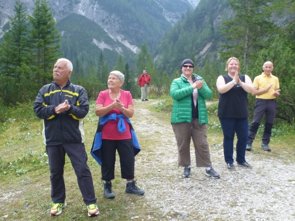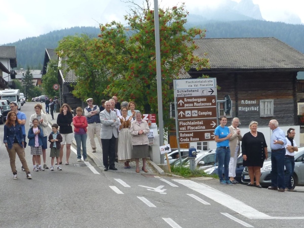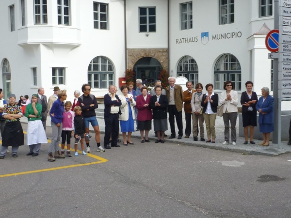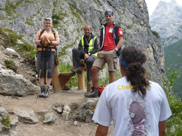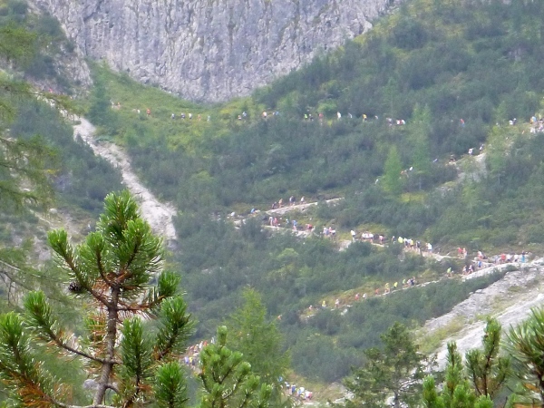 Ich gebe es offen zu: Ich werde ungeduldig. Teilweise sind wir nicht „schneller“ unterwegs als die Wanderer. Bei so viel gebremster Energie streife ich versehentlich den Fuß meines Vordermanns, der dies mit einer Schimpftirade auf Sächsisch quittiert. Daraus entwickelt sich eine doch noch sehr nette Unterhaltung. Ansonsten ist es ausgesprochen ruhig. Unterbrochen wird der „Schweigemarsch“ durch die Anfeuerungen der entgegenkommenden Spaziergänger, abwechselnd in deutscher und italienischer Sprache.