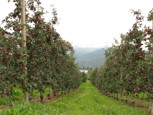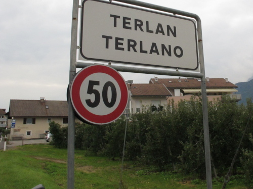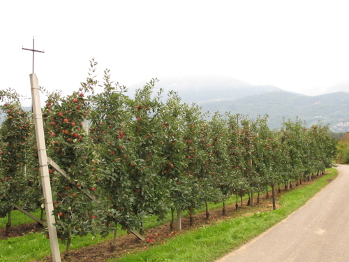 Die Gelegenheit, in Gargazon (km 16) zwei junge Mädels vor der über hundertjährigen Herz-Jesu-Pfarrkirche abzulichten, lasse ich mir dann aber doch nicht entgehen. Weiter geht’s - rote Äpfel links, grüne Äpfel rechts, dann wieder umgekehrt - nach Vilpian (km 20) und schließlich nach Terlan.