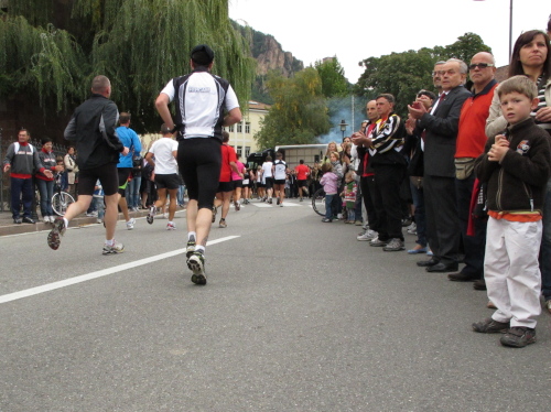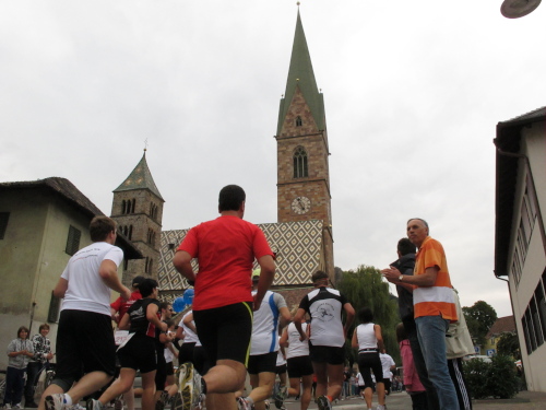 Die Stimmung ist großartig, die vielen Zuschauer feuern die Läuferinnen und Läufer lautstark an. Vor uns die Pfarrkirche aus dem 14. Jahrhundert , zusammen mit der Burgruine Maultasch aus dem 13. Jahrhundert Wahrzeichen des Ortes. Jetzt könnte ich die Schwaben ärgern und behaupten, von hier kämen die Maultaschen. Ich will aber bei der Wahrheit bleiben - der Name kommt von Margarete von Tirol, die man auch „Maultasch“ nannte. So bezeichnete man damals „Huren und liederliche Weiber“.