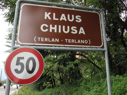 Wir kommen nach Lana (km 10), eine Gemeinde mit über 11.000 Einwohnern. Es dauert lange, bis wir den sich in die Länge ziehenden Ort hinter uns lassen. Das ist aber nicht schlimm, denn es gibt sehr schöne alte Häuser zu sehen und auch die Bewohner verstecken sich nicht. Wieder reibe ich mir verwundert die Augen und will nicht glauben, wie viele Leute die Straße säumen. Wenn da jetzt noch irgendwo eine Blasmusik spielen würde …
