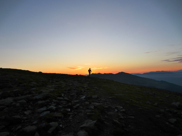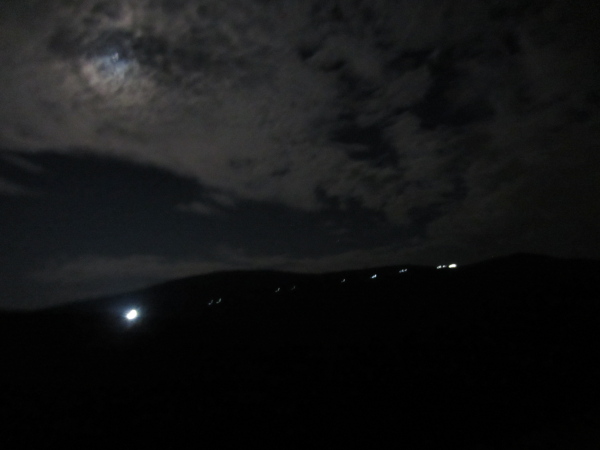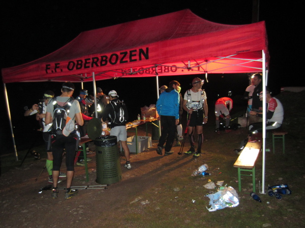 Bald verlassen wir den Wald und nähern uns im hellen Licht des abnehmenden Monds der ersten Versorgungsstelle am Rittner Horn (2.260 m). 18 km und 2.000 Höhenmeter machen hungrig und durstig. Leider ist das Angebot am VP mehr als dürftig. Bananen, Studentenfutter und Wasser, das wars. Ich habe ausreichend Eigenverpflegung im Rucksack und mache mich um 01:30 h auf den Weiterweg.