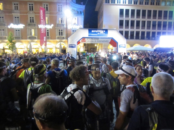 Das Briefing findet dreisprachig statt. Die meisten der 269 Teilnehmer (davon 217 Einzelstarter, der Rest sind Zweierstaffeln) kommen aus Italien (82,5 %). 24 Läuferinnen und Läufer kommen aus Deutschland, elf aus Österreich, jeweils vier aus der Schweiz, bzw. Spanien, außerdem sind ein Däne, ein Brite, ein Luxemburger und ein Slowene dabei. Angesichts der wenigen nicht Deutsch oder Italienisch Sprechenden ist das Briefing auf Englisch eine Verbeugung vor diesen Teilnehmern.