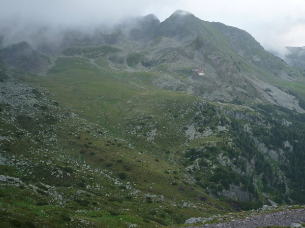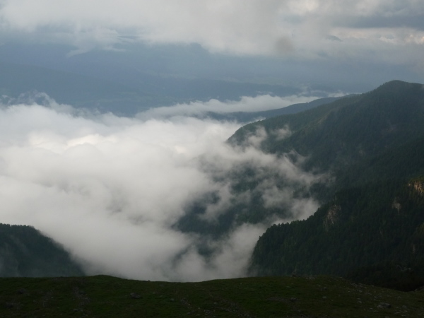 Wie von einem Balkon genießt man hier einen weiten Panoramablick ins Tal und in die Ferne. Mit frischer Pasta in Olio und Käse, dazu einem Holundertee werde ich am Versorgungsposten verwöhnt. Es fällt schwer, von diesem stimmungsvollen Ort Abschied zu nehmen.