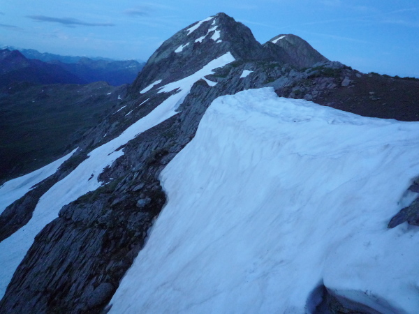 Nurmehr die Bergspitzen leuchten intensiv im letzten Abendlicht, dann senkt sich der Schleier der Nacht ganz langsam auch über sie. Ein wundervolles, ein friedvolles Bild. Und die Wolken? Die haben sich einfach, still und leise, verabschiedet. Ich schaffe es gerade noch. Im letzten fahlen Abendlicht bewältige ich das letzte Wegstück durch Schnee und fast senkrecht empor führenden Fels und Morast.