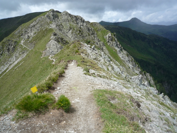Ich lasse mir Zeit, schlürfe noch ein kühles Bierchen (alkoholfrei natürlich), und so ist es schon kurz vor der „Sperrstunde“ um 15 Uhr, als ich aufbreche und mich auf einem schmalen Höhenpfad wieder in die Einsamkeit der Berge hineintragen lasse. Ich merke schon: Hinter mir kommt nicht mehr viel. Aber die Atmosphäre der Berge, diese endlose Ruhe, Weite und und das Gefühl von Freiheit spürt man solo ohnehin am intensivsten.