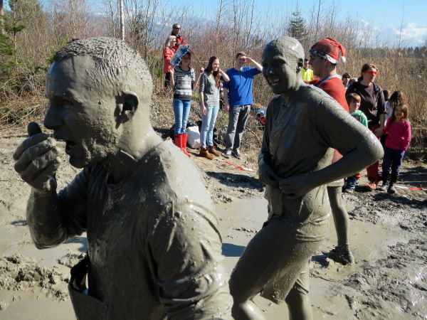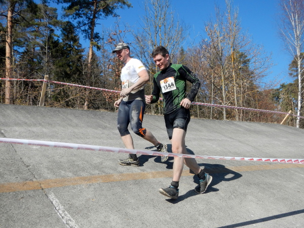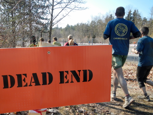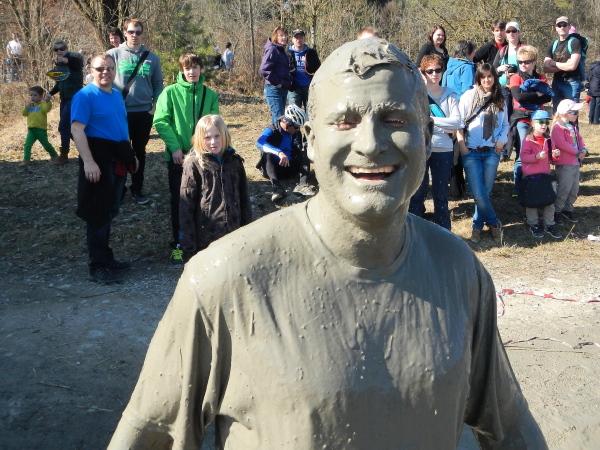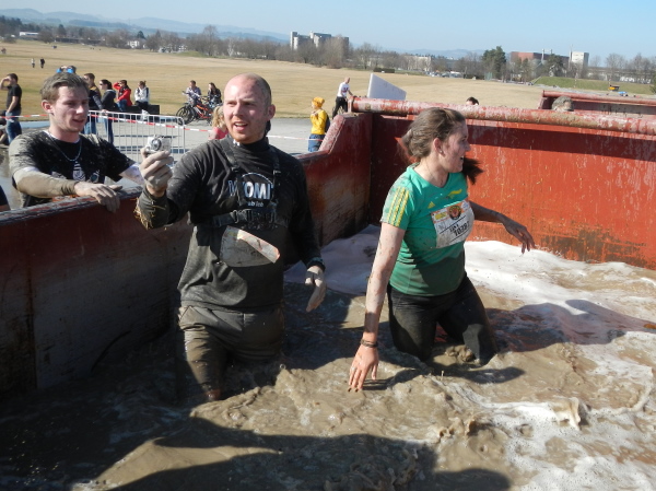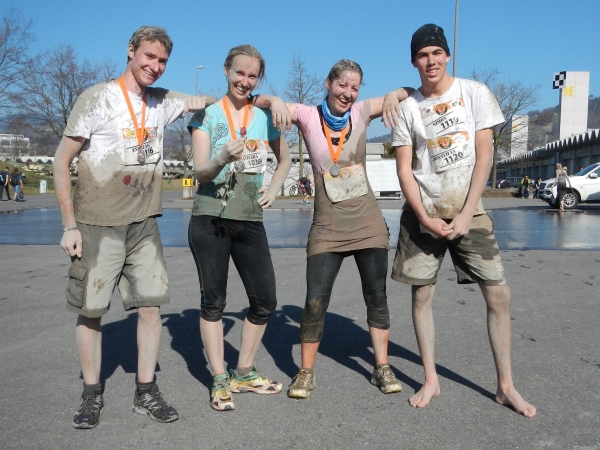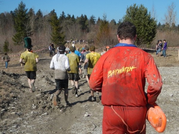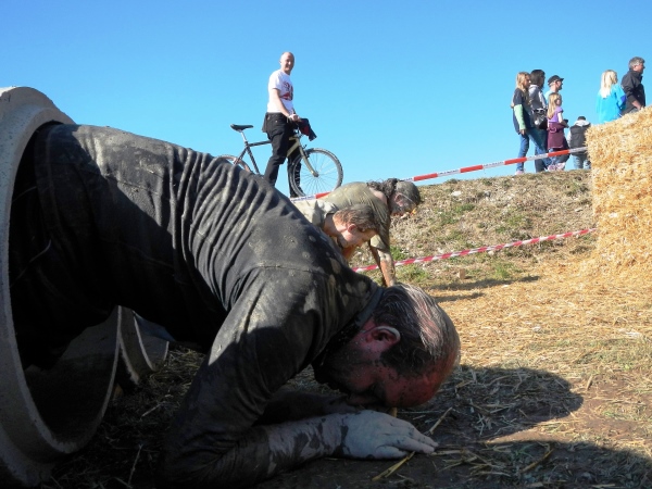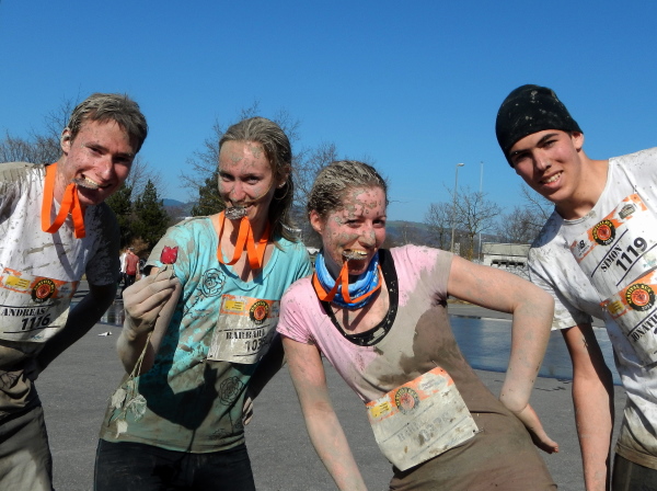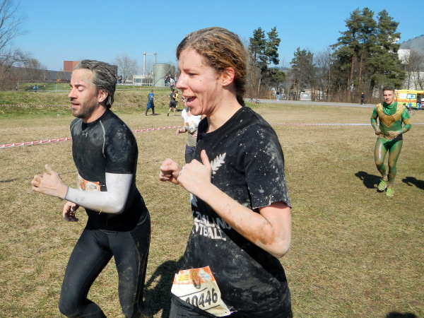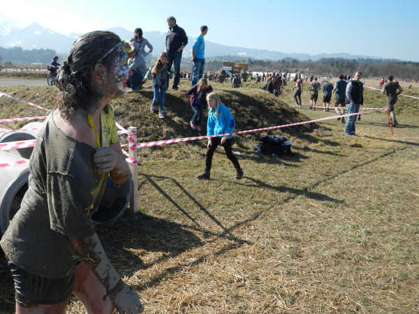 Ich nehme die zweite Runde in Angriff und höre, dass der Führende 100 Meter vor dem Ziel ist. Immerhin wurde ich nicht überrundet. Die sauberen Gestalten, die sich nun unter die Verschlammten gesellen, sind die Ablösung der Zweierteams. Können sie erahnen, was ihnen blüht?