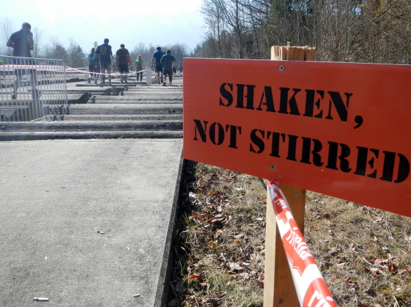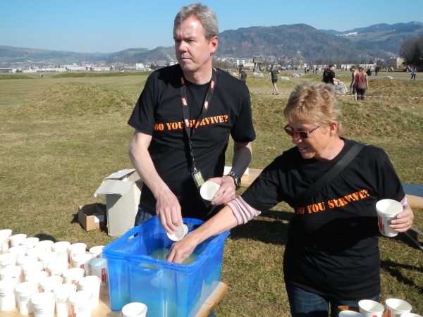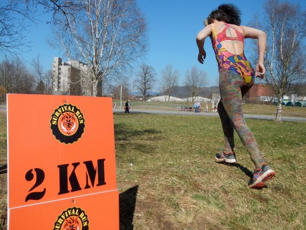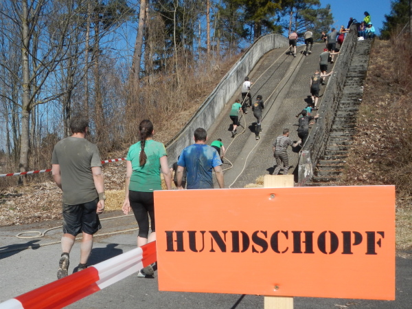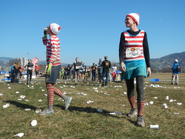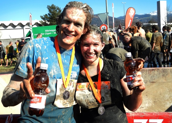 Ich genieße die verbleibenden Kilometer inmitten dieser Spaßtruppe, bei schönstem Frühlingswetter, vor dem Heimat- und Heimwehgefühle hervorrufenden Panorama und bin froh, dass ich den Chefredakteur falsch verstanden habe. Der Survival Run hat Abwechslung in mein Programm als Laufreporter gebracht. Strecken unter der Marathondistanz sind mir sonst zu hektisch, hier trifft das nicht zu. Entspannt und im Wohlfühltempo komme ich nach dem Kletter-, Kriech-, Krabbel- und Plansch-Programm ins Ziel, wo mir der Wildschwein-Orden überreicht wird und ich meinen Durst mit dem Schweizer Sport-Softdrink (wer hat’s erfunden?) löschen kann.