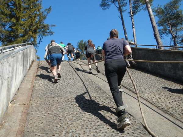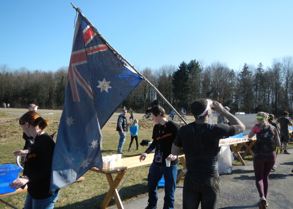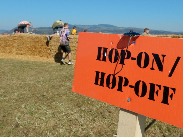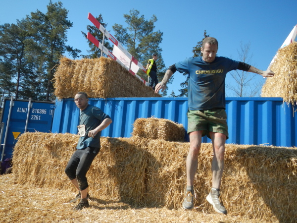 Eine weitere Barriere besteht wieder aus Schiffscontainern, welche mit Hilfe von Strohballen erklettert und wieder verlassen werden. Dann gibt es schon wieder Verpflegung, wie wir das von langen Läufen kennen.
