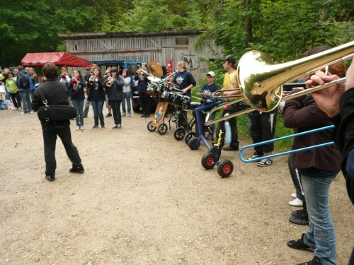 Zuerst nehme ich mir Zeit, um die meist jugendlichen Musizierenden bildlich einzufangen, dann widme ich mich der flüssigen Verpflegung und dem Steinchen, das sich kurz zuvor in meinen Schuh verirrt hat, was die Gamaschen nicht verhindern konnten. Wie sollen sie auch – zuhause in der Schublade …?