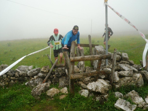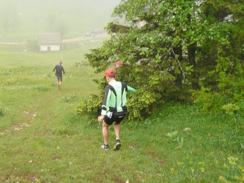 Zweihundert Meter nach dem Verpflegungsposten trennen sich die Strecken von Marathon und Trail. Damit sich keiner unfreiwillig auf die falsche Strecke begibt, stehen bei der Weiche Streckenposten, die auch Buch führen, ob niemand abkürzt.