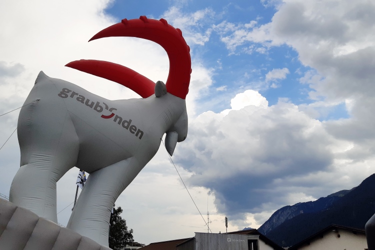 Gerade rechtzeitig komme ich an, um die Scuntrada, den Dorfmarkt erleben zu können. Auf der verkehrsgesperrten Hauptstraße reihen sich vor allem Verkaufsstände mit lokalen Spezialitäten aneinander, flanieren die Menschen in dichten Trauben auf und ab, wobei die zahlreichen mobilen Bars und Gastrostände das Ganze mehr als Feier- denn als Marktmeile erscheinen lassen. Als echter Partybreaker entpuppt sich ein sich rabenschwarz am Himmel ankündigendes Unwetter. Gerade noch kann ich ins Hotel entfliehen, als sich um Punkt fünf die Himmelsschleusen öffnen und monsunartig über Savognin ergießen. So etwas morgen in den Bergen – keine angenehme Vorstellung.