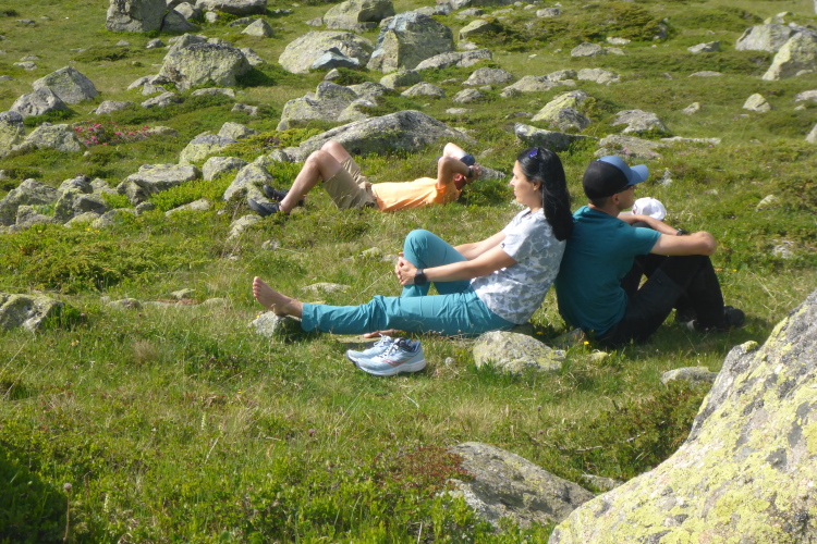 Wir reisen schon am Donnerstag an, um uns wenigstens ein wenig zu akklimatisieren. Nach entspannter Fahrt durch Frankreich und die Schweiz erreichen wir schon am Mittag das kleine Örtchen Savognin. Wir gönnen uns eine Pizza und da die Bergbahnen noch geschlossen sind, fahren wir einfach weiter zum Julierpass, dem ganzjährig geöffneten nördlich Zugang zum Engadin, der nur 30 Minuten entfernt ist. Auf 2284 m Höhe entspannen wir von der Fahrt an einem kleinen See und erfreuen uns an der Sonne auf der warmen Bergwiese. Wir genießen noch einmal das gute Wetter. Für die kommenden Tage sieht es nicht so überragend aus.