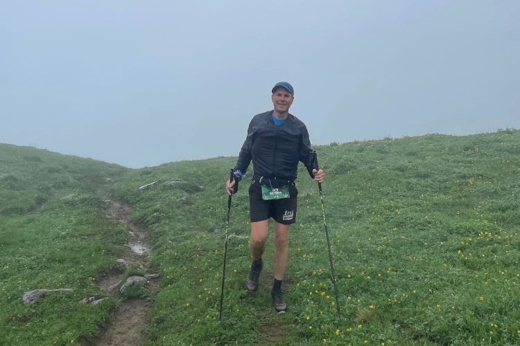 Um drei Uhr geht der Wecker. Es hat in der Nacht geregnet, aber jetzt ist es trocken. Am Start geht alles sehr entspannt zu. 91 Starterinnen und Starter stehen in der Liste. Wir treffen ein paar alte Bekannte. Die Berge sind wolkenverhangen. Immerhin herrschen angenehme Temperaturen. Die Strecke wurde in den letzten Tagen nochmal angepasst. Aggressive Mutterkühe haben keine Lust auf Trailrunner und so wird die Strecke 4 Kilometer kürzer.