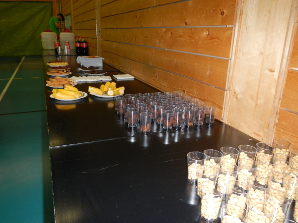 Schon bei der zweiten Verpflegungsstelle nach 18 Kilometern in Naz freue ich mich am herzlichen Empfang und der liebevollen Betreuung durch die Helfer. Trotzdem bin ich ganz überrascht, wie ich in der schmucken Mehrzweckhalle in Bergün empfangen werde. „Setz dich hin. Was dürfen wir dir zum Essen bringen? Teigwaren, Bouillon mit Reis oder nur Bouillon? Magst du einen Kaffee?“ dazu die Einladung bei den sauber portionierten getrockneten Aprikosen, Erdnüssen, Bünder Nusstörtchen oder dem Brot, dem Käse und dem Bündner Trockenfleisch zuzugreifen. Einen solchen Service habe ich noch an keinem Anlass in dieser Aufmerksamkeit und Freundlichkeit erlebt. Ich ziehe den Hut!