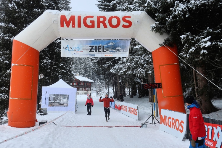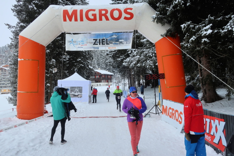 Leise knirscht es unter meinen Füßen, weiß erstrahlt der weiche Untergrund. Und wohin ich auch bli, kurz SSWR genannt. Langstreckenlauf ist ja nun nicht gerade als klassische Wintersportart bekannt, aber in Arosa wird er in diesen Stand erhoben. Wer als passionierter Langstreckenläufer den besonderen Kick sucht, der ist hier also ohne Zweifel richtig. Ein ausgedehntes Netz präparierter Winterwanderwege durch die umgebende Bergwelt macht es möglich. Fünf verschiedene Distanzen zwischen 6,1 und 21,1 Kilometern mit zwischen 190 und 1.185 Höhenmetern stehen zur Wahl, zudem diverse Fortbewegungsmodi von Lauf über Walking - mit oder ohne Nordic – bis zu Schneeschuh. Nach eigenem Gusto kann man sich also das Passende auswählen.