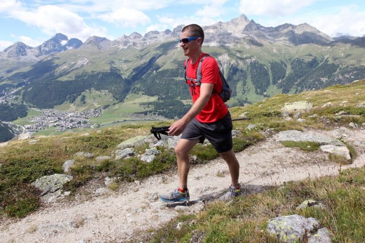 Bereits am Sonntag, dem 23. Juli geht es los, allerdings in Samedan bei St. Moritz. Das liegt im Engadin mit dem Auto 60 km von Davos entfernt. Als Prolog des SwissTrail gibt es hier den E35, eine 35 km lange Schleife über Pontresina und St. Moritz, die auch zum E14 oder E24 abgekürzt werden kann.