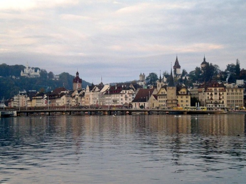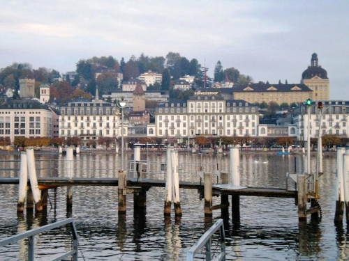 Am Ende der Seebrücke geht es links dem Seebecken entlang, am Bahnhof vorbei. Der gläsernen, von Santiago Calatrava gezeichneten Front ist das alte Bahnhofsportal von 1896 vorgesetzt, das den Bahnhofbrand von 1971 überstanden hat. Ein weiterer Stararchitekt hat gleich nebenan das Kultur- und Kongresszentrum Luzern gebaut, das KKL. Jean Nouvel hat dabei seine Idee der „Inclusion“, das Äußere nach innen und das Innere nach außen zu tragen, eine konkrete Form gegeben mit Wasserkanälen, die direkt ins Gebäude hineinführen und einem Dach, das bis über den See hinausreicht.