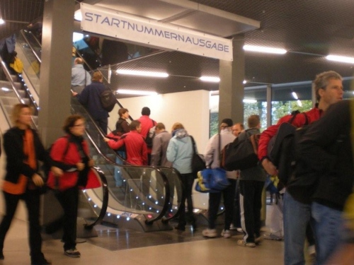 Wer die Startunterlagen noch nicht abgeholt hat, kann das am Veranstaltungstag in einem großzügigen Raum im zweiten Stock erledigen; wer noch eine kleine Stärkung braucht, kann sich nebenan noch etwas Kleines zu essen, einen Kaffee oder sonst ein Getränk besorgen.
