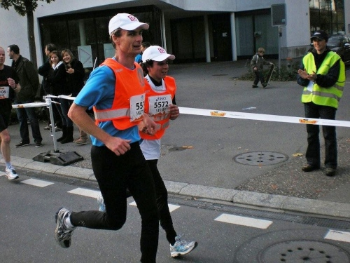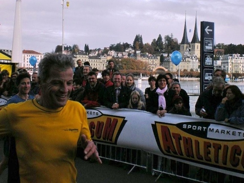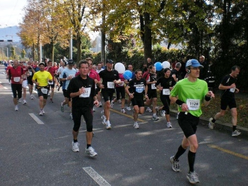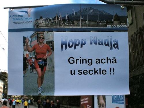 Ungefähr dreieinhalb Kilometer vor dem Wendepunk kommen wir zurück auf die Begegnungsstrecke. Es sind nicht wenige, die mir zügig entgegenkommen. Auf dem edlen Teppich beim KKL steht Viktor Röthlin und feuert individuell an. Da braucht es kein Hokus-Pokus-Motivationsseminar. Wem diese herzliche, ehrliche Aufmunterung der Marathon-Kapazität schlechthin nichts bringt, der braucht anderweitig Hilfe…