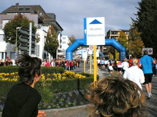 Das erneute leichte Ansteigen der Strecke ist unter dem Applaus der Zuschauer kaum zu spüren. Im Zentrum von Horw – die Eingeborenen sagen Horb – ist das Ziel des Schnuppermarathons und des einen von beiden Maratholinos. Letztere stehen allen Kindern mit Jahrgang 2003 und jünger offen und das Startgeld wird vom Presenting Partner übernommen. Startnummern gibt es wie für die Großen, und abgesehen davon, dass es keine Rang-, sondern eine alphabetische Finisherliste gibt, ist alles wie beim richtigen Marathon. Einfach die ersten 42 Kilometer der Strecke werden weggelassen.