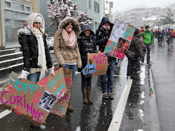 Letzter werden in Luzern geht so: Träger der Fahnen der teilnehmenden Nationen bilden ein Spalier. Die Cheerleader-Mädels geben noch einmal alles. Der Sprecher kündigt den letzten Läufer an. Gedränge an der Bande, jeder will in die erste Reihe. Applaus und Gejohle, Körpereinsatz bei Fotografen und Kameramännern. Den fast verlegen die Huldigungen entgegennehmenden Läufern folgen die Treichelschwinger. Ihr Geläut vermischt sich mit den Alphornklängen und dem tosenden Applaus. Das Läuferfest ist zu Ende.