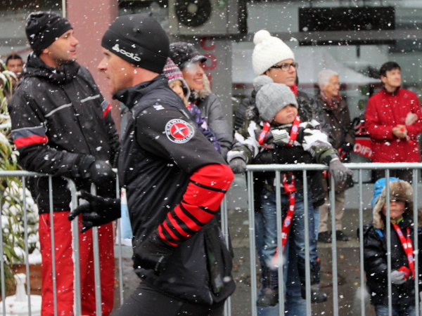 Ich gelobe, ich komme wieder. Den Aufwand mit dem Schnee kann man sich dann aber sparen. 15 Grad und etwas Sonne genügen mir. Ich laufe dann auch zwei Runden und werde Letzter.