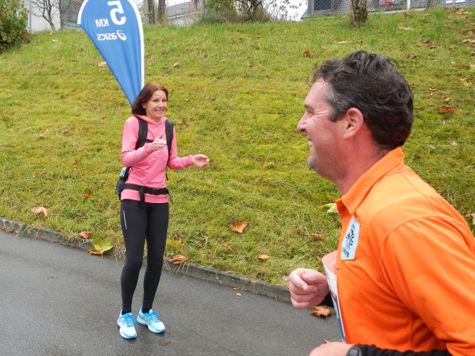 Die Straße ist breit und die Staffelung der Teilnehmer geschickt gelöst. Die erste Steigung kann jeder mit so viel Anlauf nehmen, wie es seinem Gusto entspricht. Sie ist nur kurz und ihr schließt sich eine Gefällstrecke an, nach welcher nach ungefähr vier Kilometern seit dem Start die erste Getränkestation folgt. Wie immer ist sie logisch aufgebaut und gibt keine Rätsel auf. Für eine perfekte Verpflegungsplanung kann auf der Website ein Plan heruntergeladen werden, auf welchem jedes Detail grafisch aufgeführt ist. Insgesamt gibt es auf den zwei Runden fünfzehn Verpflegungs- und Wasserstellen. Wer unter diesen Umständen in eine Dehydrierung hineinläuft, sollte vielleicht die Sportart wechseln und über Hallen-Halma nachdenken. Bei dem heutigen kühlen, feuchten Wetter erst recht.
