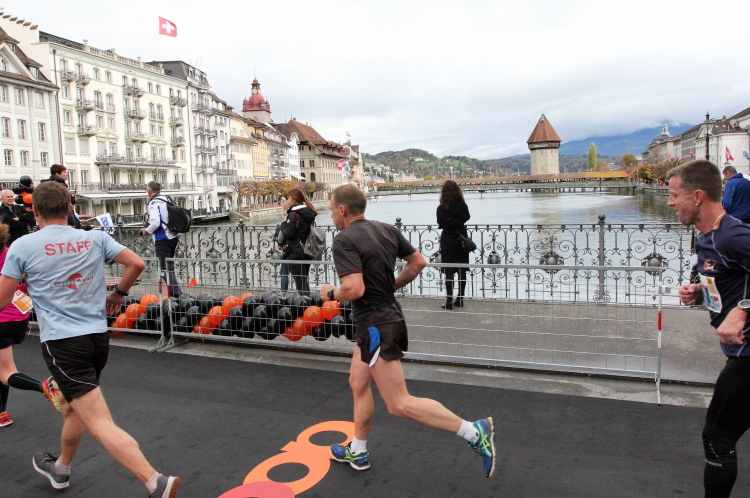 Solche gibt es auch für Läufer auf dem Weg zum Schwanenplatz. Statt direkt über die Seebrücke zurück, ist dazu ein malerischer Umweg zu nehmen, den man als Sightseeing-Kondensat bezeichnen kann. Die pittoreske Altstadt, die weltberühmte Kapellbrücke, alles ist dabei.