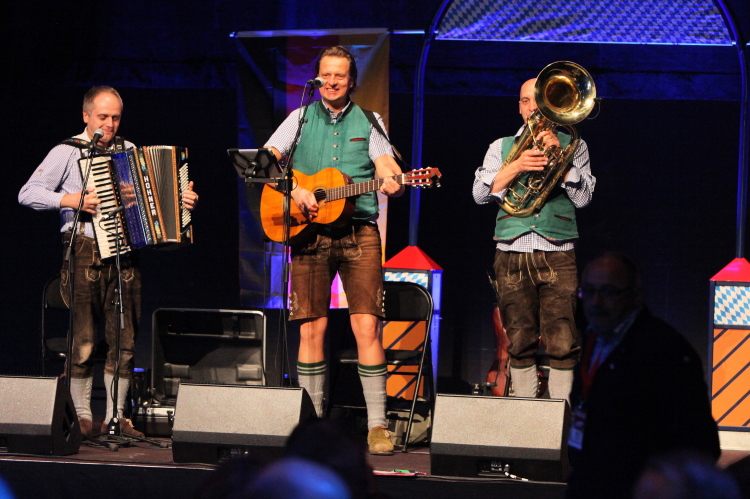 Etwa 300 Leute sind am Feierprogramm zu Ehren des Gastlandes dabei. Nebst urchiger Musik gibt es vom Chaostheater Oropax ein Lachmuskeln strapazierendes wortakrobtisches, direkt auf den SwissCityMarathon Bezug nehmendes Bühnenprogramm. Schade, dass dieses kostenlose Angebot nicht von noch mehr Leuten genutzt wird!