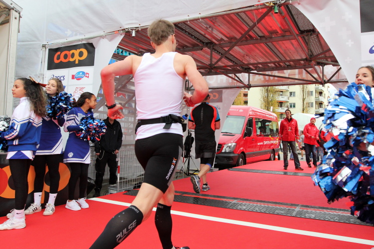 Der Programmablauf spielt meiner Zielzeit in die Hände. Das Timing ist so, dass wir zum Zeitpunkt des Starts des 10km-Laufs im Zentrum von Horw sind. Auf der Gegenseite bewegt sich der zweite Block langsam zur Startlinie und hat Zeit und Lust, uns für die restlichen gut acht Kilometer anzufeuern. Es dauert dann auch nicht lange, bis die Spitze an uns vorbeieilt, verfolgt von einer endlos scheinenden Masse.