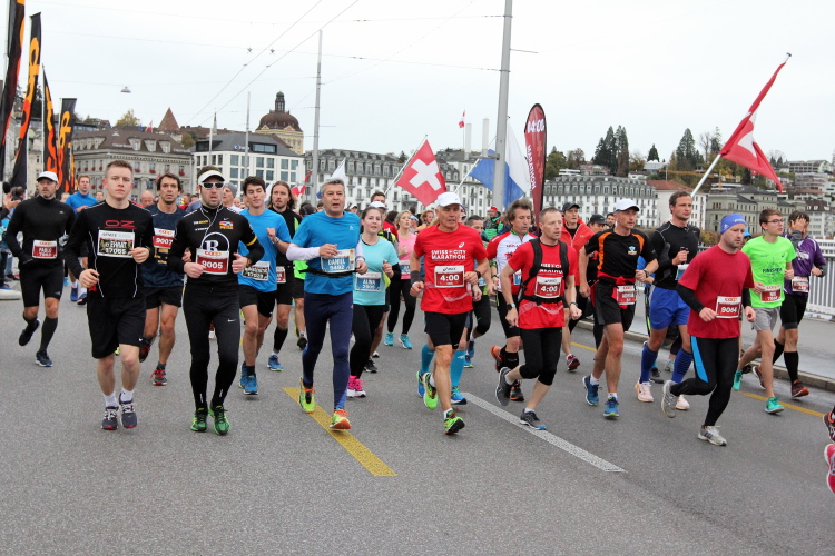 Um 09.00 Uhr starten die ganz Schnellen, also diejenigen, welche die Titel als Schweizermeister im Visier haben. Zwei Minuten später die mit angestrebten Zeiten zwischen 3:00 bis 3:15. Danach geht es im Vierminutenrhythmus weiter, bis nach einer halben Stunde die Läufer mit Zielzeit über 5:00 auf die Strecke gehen. Die Aufteilung der Startblöcke ist ausgeklügelt und bietet Gewähr, dass es bei der großen Masse von Startenden auf keinem Streckenabschnitt Engpässe gibt. Dem Zufall beziehungsweise dem Individuum selbst wird einzig die Tagesform überlassen.