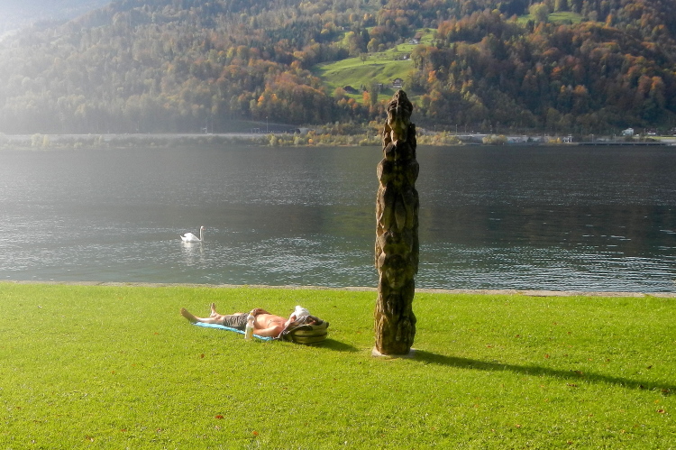Auf der Luzerner Allmend soll einmal eine wilde Jagd des Türst eine ganze Nacht gedauert haben. Das habe ich beileibe nicht vor. Wir sind zeitlich auf Kurs und auf dem Rückweg in die Stadt. Durchs Fußballstadion, durch die Altstadt mit dem Anblick der Sehenswürdigkeiten, für welche Horden von Touristen aus aller Welt anreisen. Vom Schwanenplatz an sind wir auf der Begegnungsstrecke vor dem Wendepunkt. Da kommen sie uns entgegen, der etwas schnellere Türst mit seinem Gefolge. Die Fahrbahn ist in der Mitte schön getrennt und die typische Aufforderung „Drei Schritt uswäg, drei Schritt uswäg“ ist nicht notwendig. Es muss keiner einer solchen Aufforderung nachkommen und steht damit auch nicht in der Gefahr, in die Lüfte entrückt zu werden. Ein bisschen fliegen wäre zwar eine nette Erholungspause.